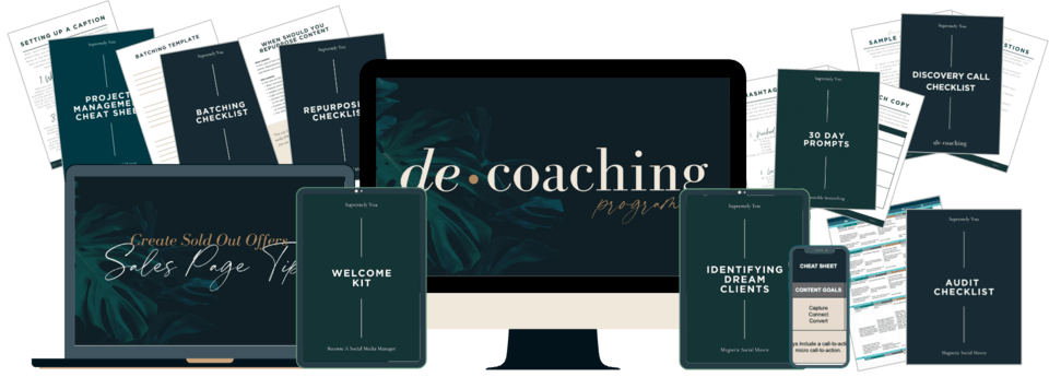 The truth is, there are no shortcuts, and while manifestation can be a powerful support tool, we still have to get visible in our business, provide drool worthy content, share our irresistible offers, and have the systems in place to support the clients we attract. That's where the De•Coaching program shines.